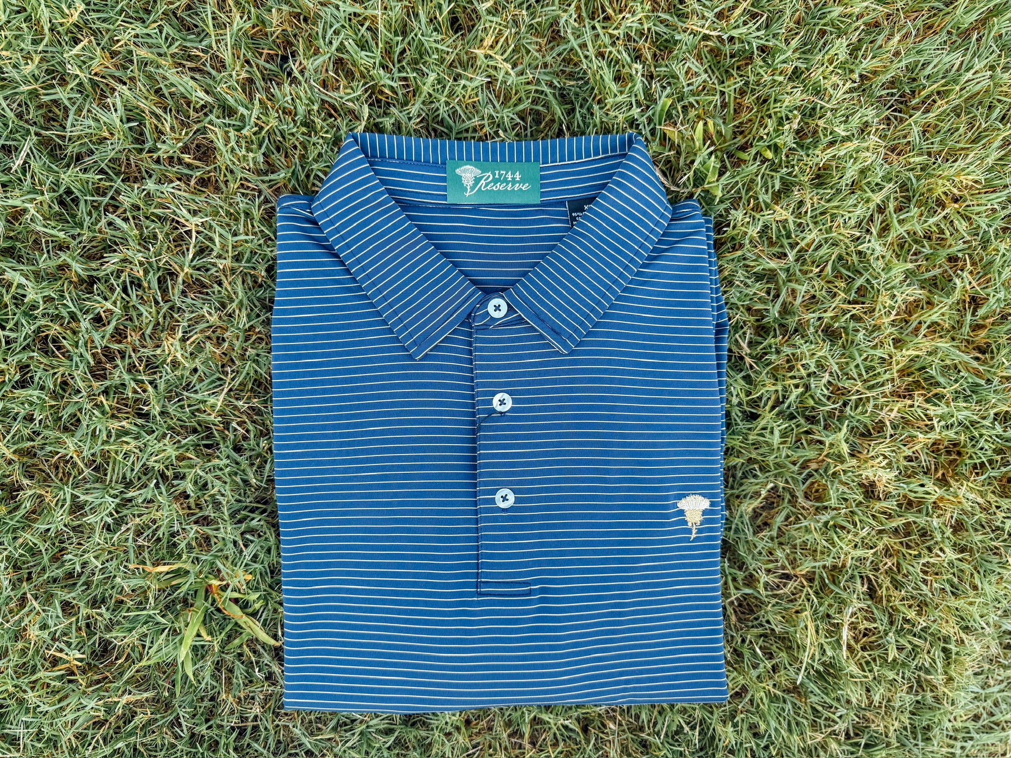 The Braemar Polo pairs a timeless navy base with fine camel stripes, echoing the contrast of golden leaves against crisp evening skies. Built for comfort on the course and style off it, this polo delivers a refined fall look that moves seamlessly from tee time to fireside gatherings. Detailed with the 1744 Reserve thistle, it’s a versatile staple — grounded, classic, and ready for the season ahead.