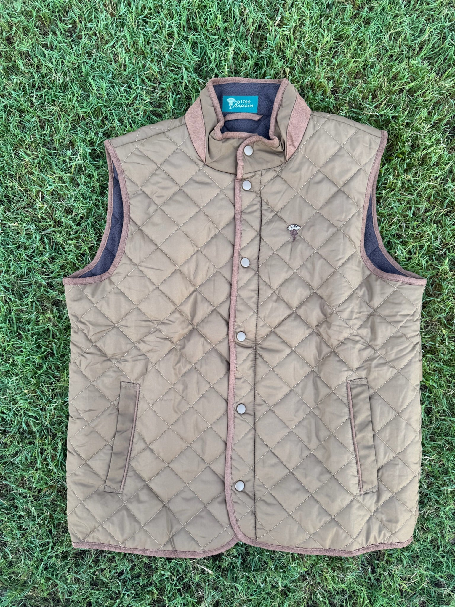 The Glenfinnan Vest brings together classic quilted design with the warmth and versatility that fall demands. Its rich earth tone, trimmed with soft contrast edging, makes it the perfect companion for layering on crisp mornings and cool evenings. Finished with the embroidered thistle, this piece carries the spirit of tradition and the rugged sophistication of the Highlands — built for the golfer who values both function and style.